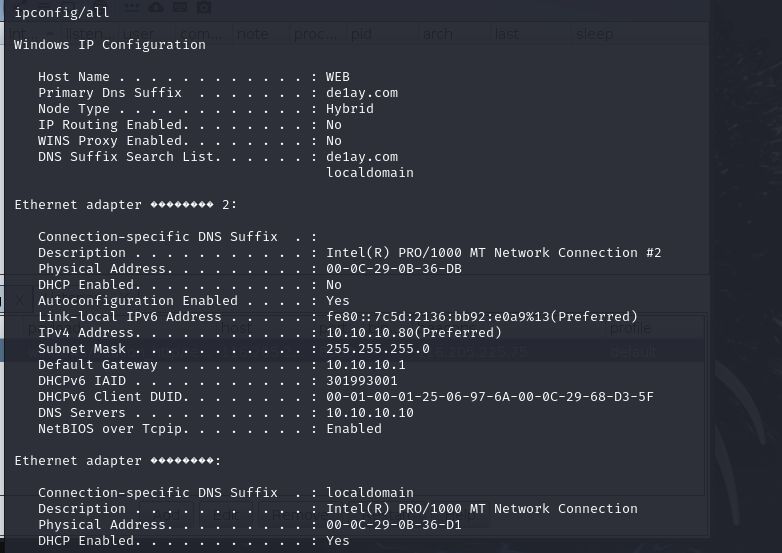 一个10.10.10.80一个192.168.254.130,域是de1ay.com